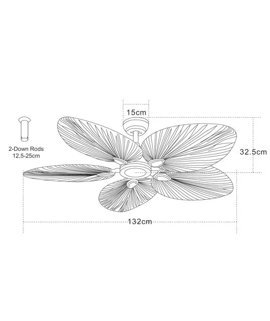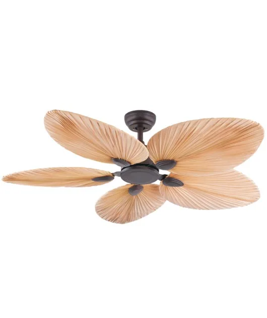 Ανεμιστήρας οροφής με μεταλλική βάση σε καφέ χρώμα, πτερύγια από φυσικό φύλλο φοίνικα. Ροή Αέρα: 134.6 m3 min.Μοτέρ DC. Διαθέτει καλοκαιρινή/χειμερινή λειτουργία και τηλεχειριστήριο για εναλλαγή ταχυτήτων.