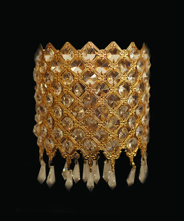 Απλίκα τοίχου από μεταλλική τρέσα με διακοσμητικά κρύσταλλα .