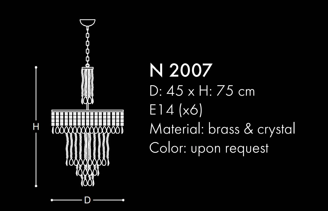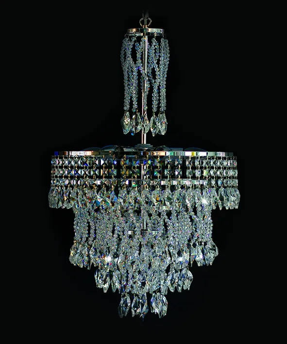 Κρεμαστό φωτιστικό με μεταλλικό σκελετό και διακοσμητικές κρυστάλλινες αλυσίδες.