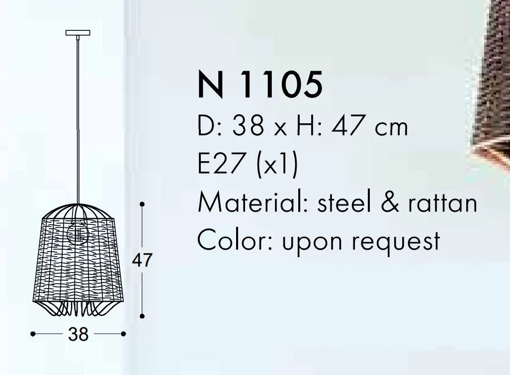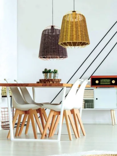 Κρεμαστό φωτιστικό από μεταλλικο σκελετό και Rattan.