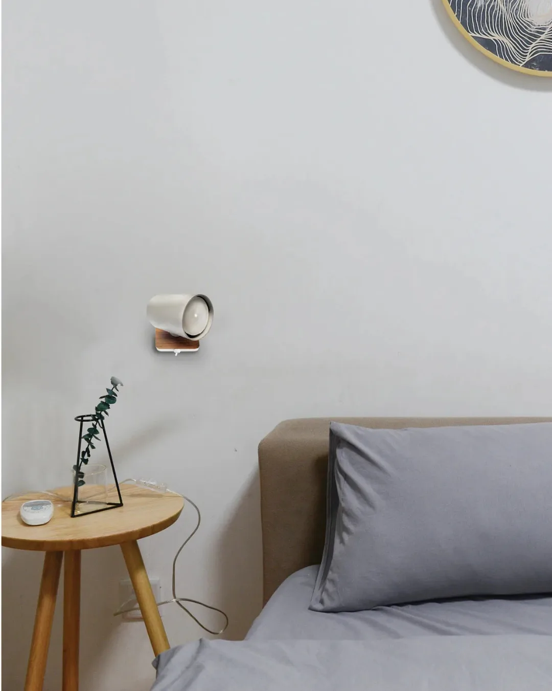Ξύλινο φωτιστικό σποτ κυλινδρικό για τοποθέτηση σε τοίχο ή σε οροφή.