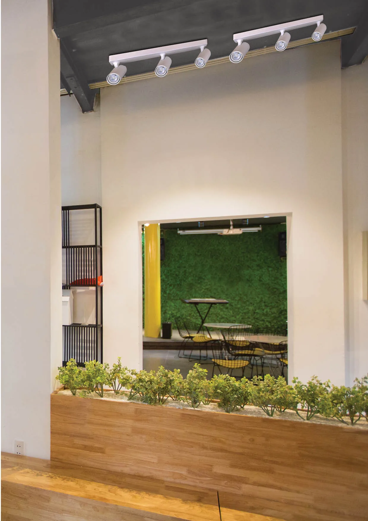 Ράγα με κυλινδρικά σποτ για τοποθέτηση σε τοίχο ή σε οροφή.