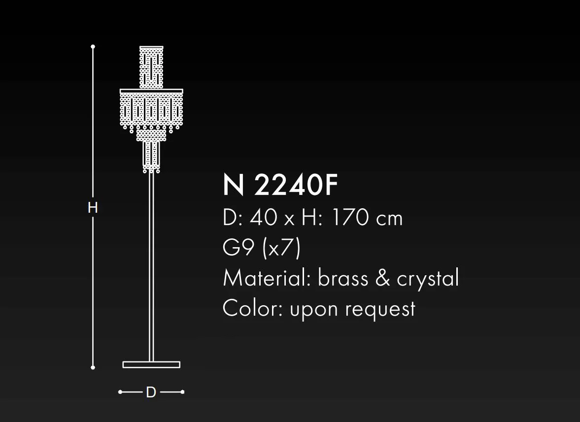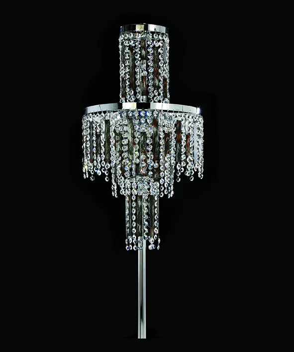 Φωτιστικό δαπέδου με μεταλλικό κορμό διακοσμητικές κρυστάλλινες αλυσίδες και μεταλλικές πλάκες.