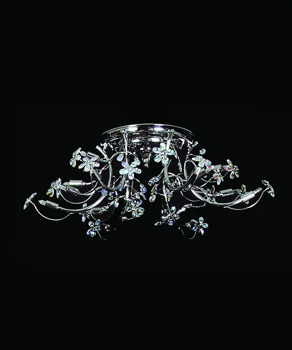 Φωτιστικό οροφής με μεταλλικό σκελετό και διακοσμητικά κρυστάλλινα λουλούδια.