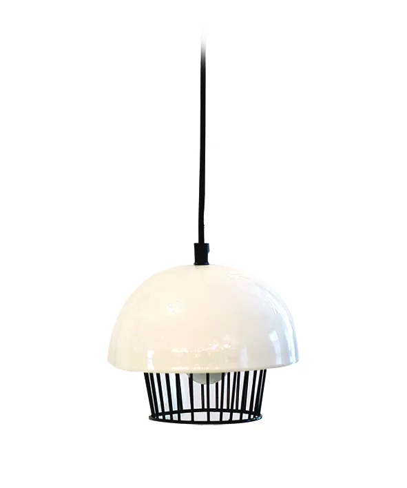 Φωτιστικό μονόφωτο με μεταλλική καμπάνα και συρμάτινο διακοσμητικό.