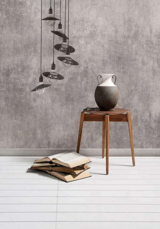 Φωτιστικό με μεταλλικά διακοσμητικά και υφασμάτινο καλώδιο.