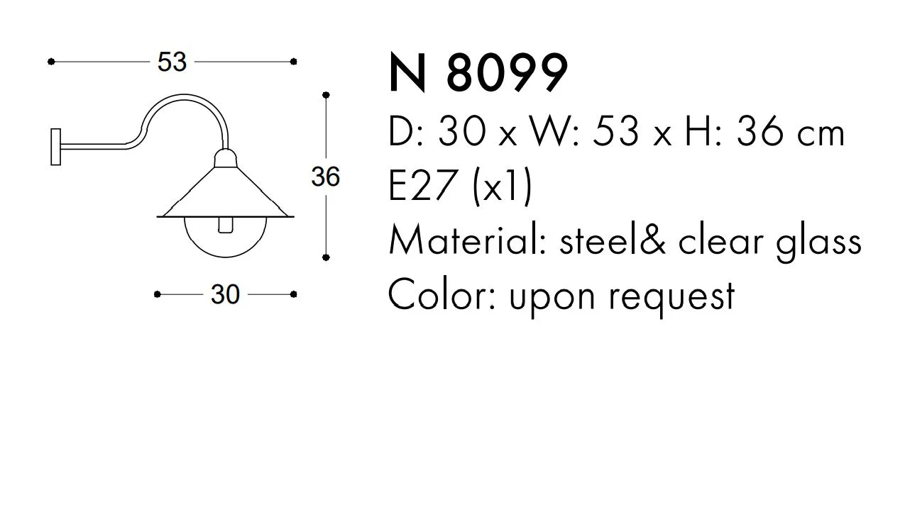Απλίκα τοίχου κατασκευασμένη από μεταλλο και γυάλινη μπάλα για στεγανοποίηση.